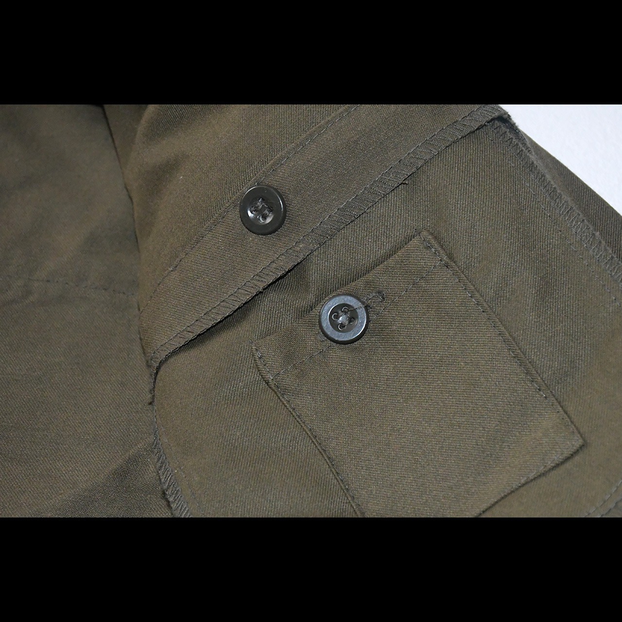 軍放出品ながら野暮ったくない絶妙なシルエットで、非常に雰囲気のある一枚です。裏地のないコットン生地で幅広いシーズンに対応してくれます。両胸に加え背面にも物の落下を防ぐフラップ付きのポケットを配置。襟裏にはチンストラップ付で防寒性を高めてくれる仕様になっています。